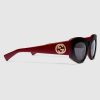 • Shiny solid Gucci Rosso Ancora red temples with Interlocking G detail