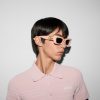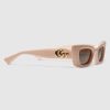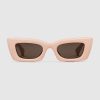 The Cruise 2025 eyewear collection blends a voluminous silhouette and signature motifs in an elevated design. These cat-eye sunglasses feature a thick frame and Double G detail on the temples.