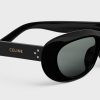 TEMPLE LENGTH 5.7 IN LENS WIDTH 2.1 IN NOSE BRIDGE LENGTH 0.7 IN Acetate Frame Cat Eye Frame Smoke Lenses Protects from UVA and UVB 3 DOTS AND CELINE SIGNATURE ON TEMPLES Reference : 4S310CPLB.38NO