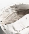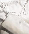 This Chanel 22 Hobo bag is made of white and light grey gradient metallic calfskin with white hardware and signature diamond quilting, white lacquered metal “Chanel” logo on the front, Chanel Paris metal hangtag, white metal and white leather interlaced chain links, long leather cord and long chain link shoulder strap.
