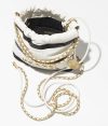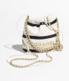 Measurements: 7.8 × 7.4 × 2.3 in / 20 × 19 × 6 cm This mini 22 Hobo bag is crafted from black and white calfskin with gold-tone hardware and features signature diamond quilting, gold-tone metal CHANEL lettering on the front, and a long chain interwoven with gold and white leather. The interior is lined with black fabric and has a slip pocket on the back wall.