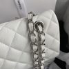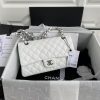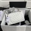 Measurements: 6 x 9.9 x 2.5 in / 15.5 × 25.5 × 6.5 cm This medium classic double flap bag is crafted in white caviar leather with silver-tone hardware, featuring the signature CC turnlock closure on the front flap, half-moon back pocket, adjustable interwoven silver-tone chain and white leather shoulder strap. The interior is lined with white leather and features a "love letter" zippered compartment under the first flap, an "outside" open pocket under the second flap, and an interior compartment with two open pockets separated by a "lipstick" compartment in the middle.