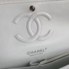 This medium classic double flap bag is crafted in white caviar leather with silver-tone hardware, featuring the signature CC turnlock closure on the front flap, half-moon back pocket, adjustable interwoven silver-tone chain and white leather shoulder strap.