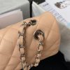 This medium classic double flap bag is crafted in light beige caviar leather with silver hardware, front flap with signature CC turnlock closure, half-moon back pocket, adjustable interwoven silver chain and light beige leather shoulder strap.