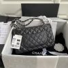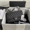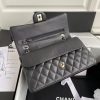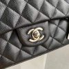 This medium classic double flap bag is crafted in black caviar leather with silver-tone hardware, featuring the signature CC turnlock closure on the front flap, half-moon back pocket, adjustable interwoven silver-tone chain and black leather shoulder strap.