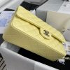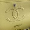 This medium classic double flap bag is made of yellow lambskin with silver-tone hardware, featuring the signature CC turnlock closure on the front flap, half-moon back pocket, adjustable interwoven silver-tone chain and yellow leather shoulder strap.