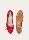 Originally envisioned by Salvatore Ferragamo in 1958, this suede ballet flat model was created for the legendary actress Marilyn Monroe. Adorned with a delicate tie and featuring a distinctive shell-shaped sole, the ballet flat is a combination of vintage charm and timeless sophistication.