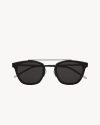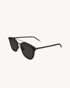round-framed sunglasses featuring a metallic double bridge and nylon lenses.