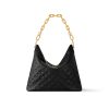 A statement addition to the Coussin line, this new Hobo model strikes the balance of fashionable and functional. Showcasing signature design details from the collection, it is crafted from smooth padded leather embossed with the House’s Monogram and has an iconic chunky chain accented with gold-toned hardware. The large removable textile strap offers multiple wearing options. This versatile piece also includes a removable zipped pouch and is sized to store a laptop.