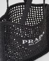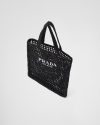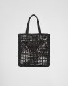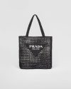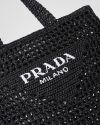 This crochet tote bag with a soft, deconstructed design boasts a light and summery mood. A new interpretation of Prada's emblematic triangle decorates the front and is embellished at its center with the embroidered lettering logo.