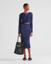 This crochet tote bag with a soft, deconstructed design boasts a light and summery mood. A new interpretation of Prada’s emblematic triangle decorates the front and is embellished at its center with the embroidered lettering logo.