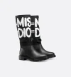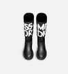 The D-Major boot is an elegant and assertive creation. The style combines black technical fabric with black calfskin and showcases the white Miss Dior Graffiti motif, a nod to the 1967 debut ready-to-wear collection and a manifesto to Maria Grazia Chiuri's signature celebration of feminism. The CD initials on the adjustable strap and a notched sole complete the boot.