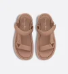 The D-Wave sandal highlights a hybrid silhouette with a modern aesthetic. The style has powder pink lambskin straps enhanced by the gold-tone Christian Dior Paris signature on the side. Completed by an ultralightweight and comfortable notched EVA sole, the sandal will lend a contemporary touch to any of the season’s looks.
