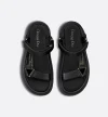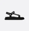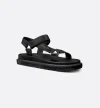 The D-Wave sandal highlights a hybrid silhouette with a modern aesthetic. The style has black lambskin straps enhanced by the gold-tone Christian Dior Paris signature on the side. Completed by an ultralightweight and comfortable notched EVA sole, the sandal will lend a contemporary touch to any of the season's looks.