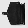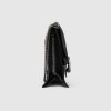 Gucci presents a maxi version of the signature Dionysus shoulder bag. Designed with a more contemporary look, this iteration in sleek black patent leather features a tiger head closure with a flap and a sliding chain that can be adjusted to wear with the preferred length and style.