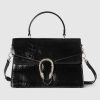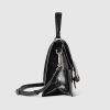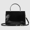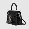 Gucci has unveiled a new style for the iconic Dionysus line. The top handle bag features a contemporary look, and is crafted in sleek black patent leather. At the front appears the signature tiger head closure with a flap, as well as a sliding chain that can be adjusted to suit the wearer’s preferred length and style.