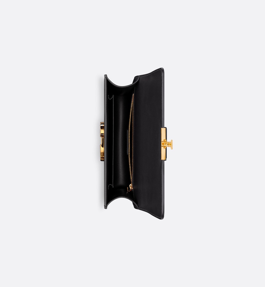 • The 30 Montaigne line is inspired by the emblematic address and offers essential pieces that embody the House’s iconic codes. The bag is crafted in black box calfskin for an elegant and modern look. The flap is embellished with an antique gold-finish metal CD clasp, inspired by the seal of a Christian Dior perfume bottle. Refined details such as an embossed 30 Montaigne signature on the back, define this unique design. Featuring an adjustable leather shoulder strap, the 30 Montaigne bag can be carried by hand, worn over the shoulder or crossbody.