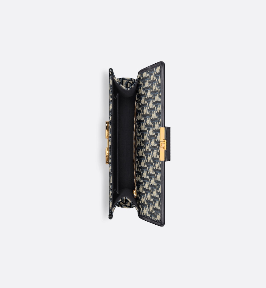 • The 30 Montaigne line, inspired by the hallmark address, offers essential pieces that embody the House's iconic codes. The bag is crafted in blue jacquard and highlights the House's classic Dior Oblique motif for an elegant and modern design. The flap has an antique gold-finish metal CD clasp, inspired by the seal of a Christian Dior perfume bottle. Other details, like the embossed 30 Montaigne signature at the back, accent the streamlined design. Thanks to the chain strap, the bag can be carried by hand, worn over the shoulder or crossbody.