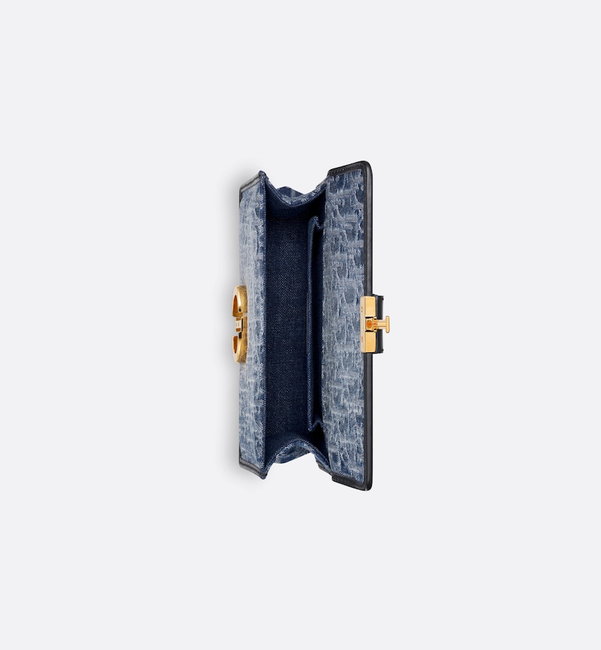 • The East-West bag with chain enhances the 30 Montaigne line with a timeless and elegant design. The bag is crafted in blue Denim Dior Oblique jacquard, offering a new take on the iconic House motif with the modern appeal of an irregular stonewashed effect. The flap has an antique gold-finish metal CD clasp, inspired by the seal of a Christian Dior perfume bottle. Other details, like the embossed 30 Montaigne signature on the back, highlight the streamlined style. The bag features a removable chain strap with a leather insert that allows it to be comfortably carried by hand, worn over the shoulder or crossbody.