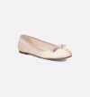 The Dior Ballet flat revisits a timeless style with the House's couture aesthetic. Crafted in rose quartz quilted calfskin with the Cannage motif, it is distinguished by a delicate grosgrain bow on the front adorned with a white CD resin pearl inspired by the iconic Dior Tribales earrings. Featuring a padded leather insole, the supple, comfortable ballet flat will add the finishing touch to any of the season's looks.