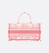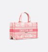 • New for Fall 2024 and part of the Dioriviera capsule, Maria Grazia Chiuri's Dior Book Tote is updated with a new East-West format. The style is entirely embroidered with the Toile de Jouy Soleil motif in candy pink, offering a new take on the iconic House pattern with suns and crescent moons layered into a floral arrangement representing the four seasons. Designed to keep daily items organized, the practical tote is a prime example of Dior's savoir-faire and can be carried by hand or worn over the shoulder.