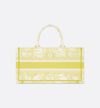• Part of the Dioriviera capsule, Maria Grazia Chiuri's newest Dior Book Tote is updated with a new East-West format. The style is entirely embroidered with the Toile de Jouy Soleil motif in lemon yellow, offering a new take on the iconic House pattern with suns and crescent moons layered into a floral arrangement representing the four seasons. Designed to keep daily items organized, the practical tote is a prime example of Dior's savoir-faire and can be carried by hand or worn over the shoulder.
