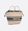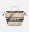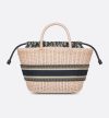 • The hat basket bag stands out with its elegant silhouette combining functionality and refinement. A testament to House savoir-faire, the bag is hand-woven using artisanal techniques in natural wicker. The style features wicker top handles and a blue Dior Oblique jacquard interior drawstring pouch. The Christian Dior Paris signature adorns the front. The spacious bag is completed by an adjustable and removable embroidered shoulder strap that allows it to be carried by hand, worn over the shoulder or crossbody.