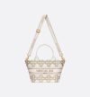 • The hat basket bag stands out with its elegant silhouette combining functionality and refinement. Fully embroidered with a gold-tone Macrocannage motif, the style is enhanced by the Christian Dior Paris signature on the front. Equipped with a tonal detachable zip pouch, the spacious bag is completed by an adjustable and removable embroidered strap, allowing it to be carried by hand, worn over the shoulder or crossbody.