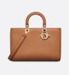 • New for Summer 2024, the Lady D-Sire bag draws inspiration from the signature elegance of the Lady Dior design. Reimagined with a casual style for an urban look, the lightweight dark brandy grained Taurillon leather feels soft to the touch yet offers excellent durability. The large style is embellished with pale gold-finish metal D.I.O.R. charms highlighting the silhouette. Showcasing a removable, thin leather shoulder strap, the unique bag can be carried by hand or over the shoulder.