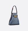 • The C'est Dior bag is an elegant and timeless creation. The style is constructed in blue Denim Dior Oblique jacquard, offering a new take on the iconic House motif with the modern appeal of an irregular stonewashed effect. Thanks to its CD Lock closure with a twisting letter D, the bucket bag can keep the essentials secure. A top handle and adjustable, removable chain strap with a leather insert allow the medium bag to be comfortably carried by hand or worn over the shoulder.