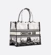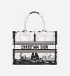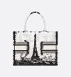 • Introduced by Maria Grazia Chiuri, Creative Director of Christian Dior, the Dior Book Tote has become a staple of the Dior aesthetic. Designed to hold all the daily essentials, the style is fully embroidered with the white and black Paris motif, a pillar of the collection that honors the Eiffel Tower in a graphic spirit. Adorned with the Christian Dior Paris signature on the front, the medium tote exemplifies the House's savoir-faire and may be carried by hand or worn over the shoulder.