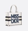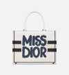 • Introduced by Maria Grazia Chiuri, Creative Director of Christian Dior, the Dior Book Tote has become a staple of the Dior aesthetic. Designed to hold all the daily essentials, the fully embroidered white style showcases the blue Miss Dior Graffiti motif, a nod to the 1967 debut ready-to-wear collection and a manifesto to Maria Grazia Chiuri's signature celebration of feminism. The medium tote exemplifies Dior's savoir-faire and may be carried by hand or worn over the shoulder.