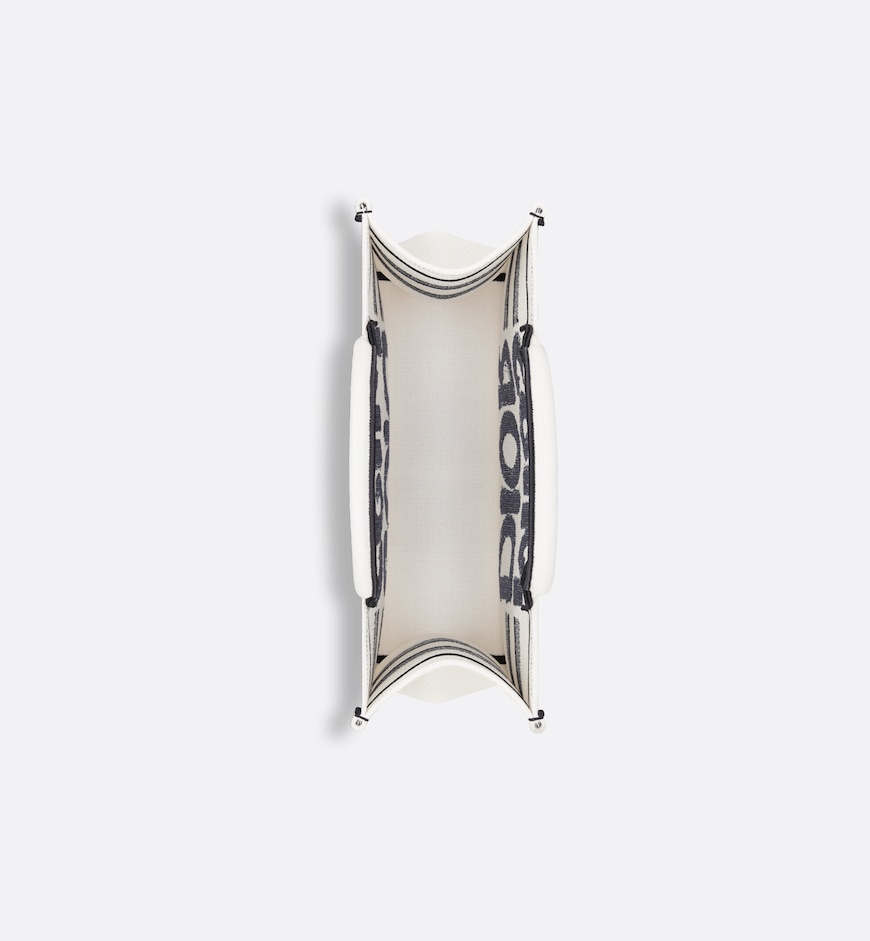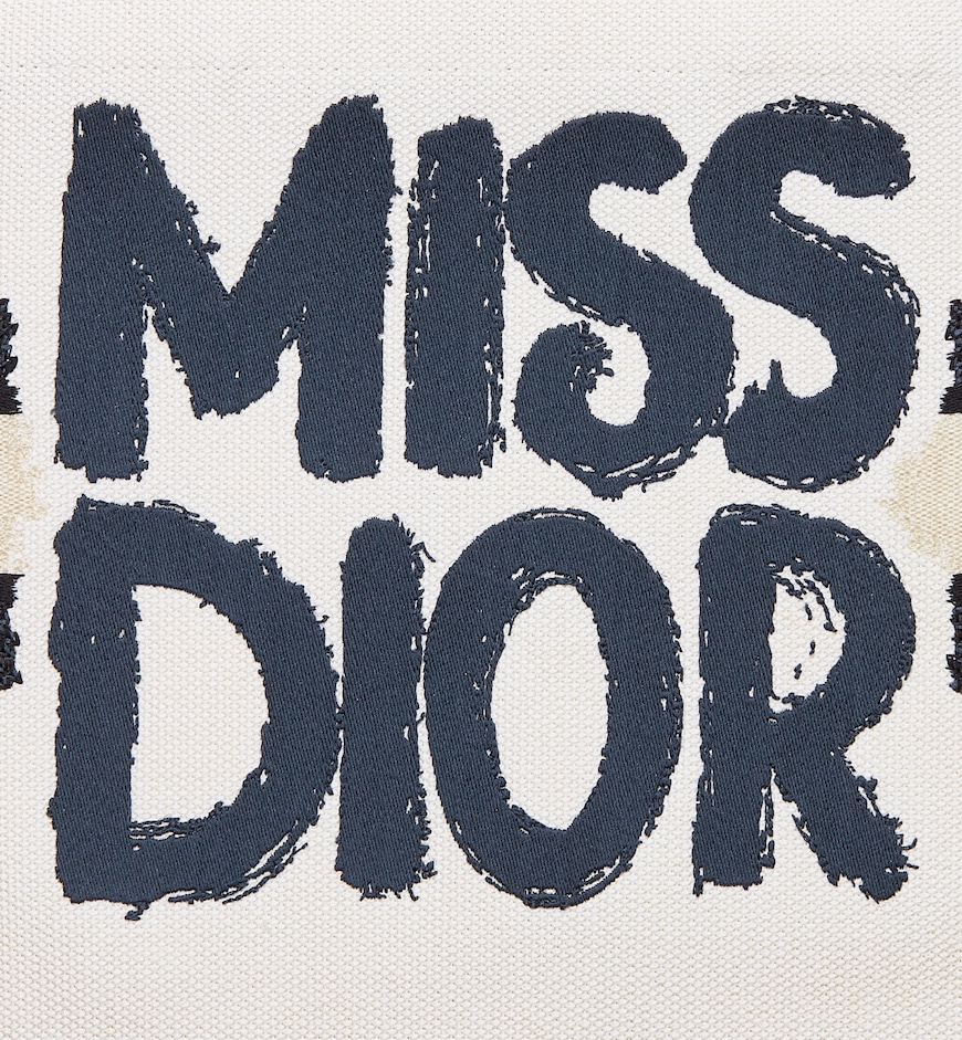 • Introduced by Maria Grazia Chiuri, Creative Director of Christian Dior, the Dior Book Tote has become a staple of the Dior aesthetic. Designed to hold all the daily essentials, the fully embroidered white style showcases the blue Miss Dior Graffiti motif, a nod to the 1967 debut ready-to-wear collection and a manifesto to Maria Grazia Chiuri's signature celebration of feminism. The medium tote exemplifies Dior's savoir-faire and may be carried by hand or worn over the shoulder.