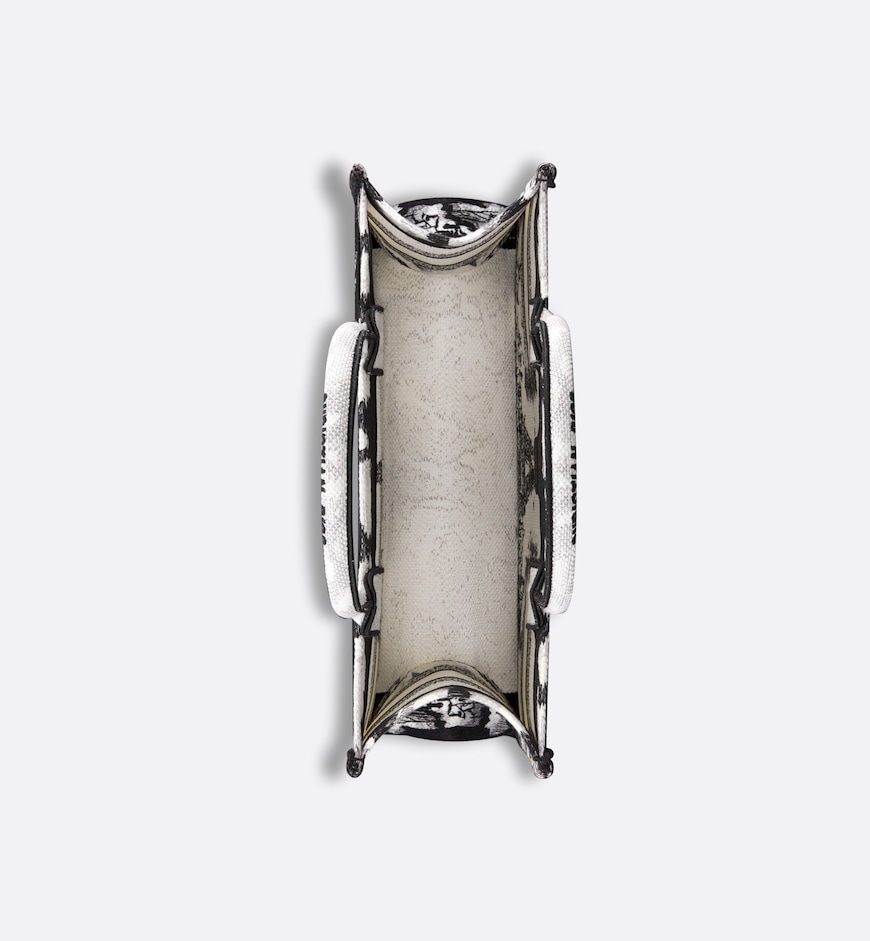 • Introduced by Maria Grazia Chiuri, Creative Director of Christian Dior, the Dior Book Tote has become a staple of the Dior aesthetic. Designed to hold all the daily essentials, the style is fully embroidered with the white and black Paris motif, a pillar of the collection that honors the Eiffel Tower in a graphic spirit. Adorned with the Christian Dior Paris signature on the front, the medium tote exemplifies the House's savoir-faire and may be carried by hand or worn over the shoulder.