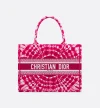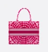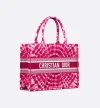 • Part of the Miss Dior capsule, the Dior Book Tote is a House classic designed by Maria Grazia Chiuri, Creative Director of Christian Dior. Designed to hold all the daily essentials, the style is fully embroidered in a colorful fuchsia version of Maria Grazia Chiuri's hallmark Tie & Dior motif. Enhanced by the Christian Dior Paris signature on the front, the medium tote exemplifies Dior craftsmanship and may be carried by hand or worn over the shoulder.