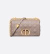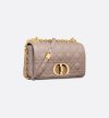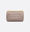 • The Dior Caro bag combines modernity with timeless elegance. The silhouette is crafted in warm taupe supple calfskin with Cannage topstitching. The bag features a flap adorned with an antique gold-finish metal CD twist clasp, inspired by the seal of a Christian Dior perfume bottle. The detachable chain shoulder strap with CD signature links allows the medium bag to be carried by hand or worn over the shoulder and may be replaced by one of the House’s wide embroidered straps for day or evening attire.