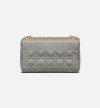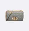 • The Dior Caro bag combines modernity with timeless elegance. The silhouette is crafted in stone gray supple calfskin with Cannage topstitching. The supple bag features a flap adorned with an antique gold-finish metal CD twist clasp, inspired by the seal of a Christian Dior perfume bottle. The detachable chain shoulder strap with CD signature links allows the medium bag to be carried by hand or worn over the shoulder and may be replaced by one of the House's wide embroidered straps for day or evening attire wear.
