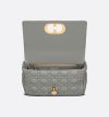 • The Dior Caro bag combines modernity with timeless elegance. The silhouette is crafted in stone gray supple calfskin with Cannage topstitching. The supple bag features a flap adorned with an antique gold-finish metal CD twist clasp, inspired by the seal of a Christian Dior perfume bottle. The detachable chain shoulder strap with CD signature links allows the medium bag to be carried by hand or worn over the shoulder and may be replaced by one of the House’s wide embroidered straps for day or evening attire wear.