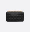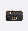 • The Dior Caro bag combines modernity with timeless elegance. The style is crafted in black supple calfskin with Cannage stitching. The bag showcases a flap adorned with an antique gold-finish metal CD twist clasp, inspired by the seal of a Christian Dior perfume bottle. The detachable chain shoulder strap with CD signature links allows the medium bag to be carried by hand, worn over the shoulder or crossbody, and may be replaced by one of the House's wide embroidered straps for day or evening attire.