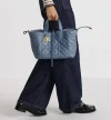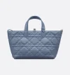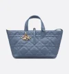 • The Dior Toujours bag is distinguished by a casual and practical design. Crafted in denim blue calfskin with Macrocannage topstitching, it showcases a spacious interior compartment with a matching pouch to organize the essentials. Its thin leather strap closure keeps items secure while the D of the CD Lock clasp twists to adjust the sides and enhance the bag's silhouette. The leather top handles can be adjusted using the small notches so the medium bag can be carried by hand or worn over the shoulder.