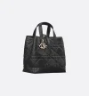 • The Dior Toujours vertical tote bag is distinguished by a modern and practical design. Crafted in black calfskin with Macrocannage topstitching, it has a spacious interior compartment to accommodate all the essentials. Its thin leather strap closure keeps items secure, while the D of the CD Lock clasp twists to adjust the sides and enhance the bag's silhouette. The leather top handles are completed by a removable leather strap, allowing the medium bag to be carried by hand, worn over the shoulder or crossbody.