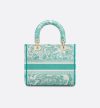 • Part of the Dioriviera capsule, the Lady D-Lite bag combines classic elegance with House modernity. The style is fully embroidered with the Toile de Jouy motif in aquamarina. The front features a Christian Dior Paris signature while the thick pale gold-finish metal D.I.O.R. charms enhance and illuminate the silhouette. Equipped with a wide, reversible and removable embroidered shoulder strap, the medium Lady D-Lite bag can be carried by hand or worn crossbody.