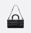 • The Lady D-Joy bag captures the House's vision of elegance and beauty by showcasing the iconic streamlined aesthetic of the Lady Dior line. Constructed in black crinkled calfskin with Cannage stitching, its quilted texture is immediately recognizable. Ultra-matte metal D.I.O.R. charms add a modern touch. Featuring one removable chain strap and another adjustable and removable leather strap, the medium Lady D-Joy bag can be carried by hand, worn over the shoulder or crossbody as a daily companion.