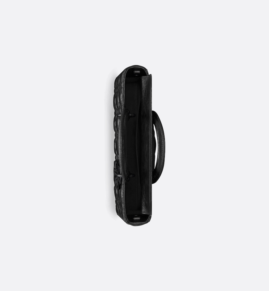 • The Lady D-Joy bag captures the House's vision of elegance and beauty by showcasing the iconic streamlined aesthetic of the Lady Dior line. Constructed in black crinkled calfskin with Cannage stitching, its quilted texture is immediately recognizable. Ultra-matte metal D.I.O.R. charms add a modern touch. Featuring one removable chain strap and another adjustable and removable leather strap, the medium Lady D-Joy bag can be carried by hand, worn over the shoulder or crossbody as a daily companion.