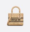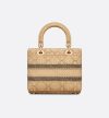 • The Lady D-Lite bag combines classic elegance with House modernity. Crafted in natural raffia, it showcases hallmark Cannage stitching. A Christian Dior Paris signature adorns the front, while D.I.O.R. charms in pale gold-finish metal further enhance and highlight the silhouette. Featuring a wide, removable and reversible embroidered shoulder strap, the medium Lady D-Lite bag can be carried by hand or worn crossbody.