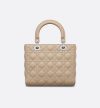 • The Lady Dior bag embodies the House’s vision of elegance and beauty. Sleek and refined, the style is timeless. Crafted in sand-colored grained calfskin with Cannage stitching, the bag presents the instantly recognizable quilted texture, while silver-finish metal D.I.O.R. charms offer a modern touch. Featuring a thin, removable leather shoulder strap, the medium Lady Dior bag can be carried by hand or worn crossbody.