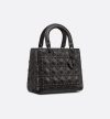• The Lady Dior bag epitomizes Dior's vision of elegance and beauty. Sleek and refined, the timeless creation is crafted in black Cannage calfskin, showcasing a graphic interpretation of the House's iconic motif. Tonal enamel D.I.O.R. charms offer elegant appeal. Featuring a thin, removable leather shoulder strap, the medium Lady Dior bag can be carried by hand or worn crossbody.