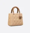 • The Lady Dior bag embodies the House's vision of elegance and beauty. Sleek and refined, the timeless style is crafted in beige raffia showcasing the Graphic Cannage motif, offering a modern 3D version of the House icon. D.I.O.R. charms adorned in camel leather embellish its silhouette. Featuring a thin, removable leather strap, the medium Lady Dior bag can be carried by hand or worn crossbody.