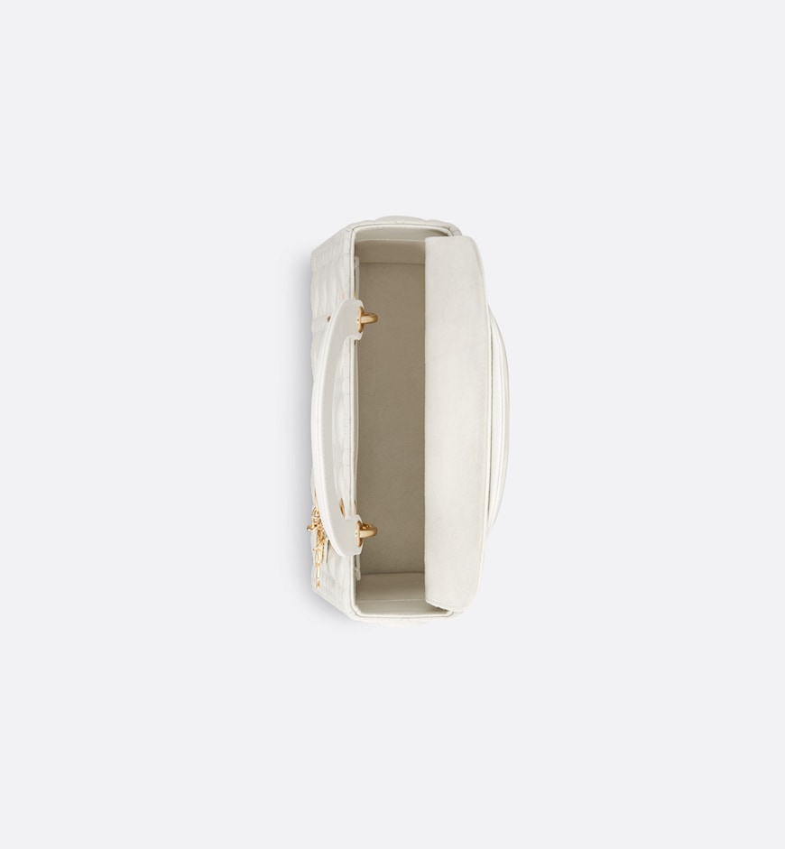 • The Lady Dior bag epitomizes the House's vision of elegance and beauty. Sleek and refined, the timeless style is crafted in latte lambskin with Cannage stitching, creating the instantly recognizable quilted texture. Pale gold-finish metal D.I.O.R. charms offer elegant appeal. Featuring a thin, removable leather shoulder strap, the medium Lady Dior bag may be carried by hand or worn crossbody.