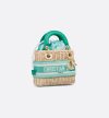 Part of the Dioriviera capsule, the Lady Dior bag epitomizes Dior’s vision of elegance and beauty. Sleek and refined, the timeless style exemplifies House savoir-faire with handwoven natural wicker. It features leather top handles and an interior drawstring pouch in aquamarina Toile de Jouy jacquard. The embroidered Christian Dior Paris band, inspired by the Dior Book Tote, and pale gold-finish metal D.I.O.R. charms illuminate the silhouette. A wide, removable embroidered strap allows the miniature bag to be carried by hand, worn over the shoulder or crossbody.